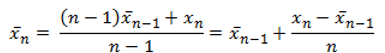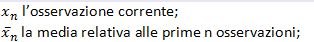 Le formula ricorsiva a cui fa riferimento Welford (relative all’aggiornamento dei parametri) per il calcolo della media, è la seguente: